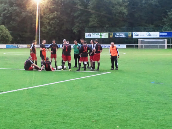 Dann wurde es ruppiger und unruhiger auf beiden Seiten. Der Druck stieg und damit auch die Unzufriedenheit, so dass sich beide Lager untereinander maßregelten. Doch wir kompensierten das..... denn was raus muss muss raus.... und münzten das in Tore um. 2 schöne Tore durch Jörg ( 16:25 Min. ) und Lars ( 18:46 Minute ) brachten uns nun weiter nach vorne. Es folgte eine weitere große Chance, die der gegnerische Torwart aber gut vereitelte. Ibi konnte sich bei Minute 24:18 ebenfalls in die Torschützenliste eintragen, als man quasi aus zweiter Reihe abzog. Abseits wurde gerufen, aber nicht gegeben.... ein Gegner stand am Pfosten und somit lag kein Abseits vor. Dann gab es zwei weitere Großchancen auf unserer Seite, doch es änderte sich nicht am Spielstand. In HZ 2 war dann nach 33 Minuten Schluss... ich denke der Schiri hatte ein Einsehen. @tim